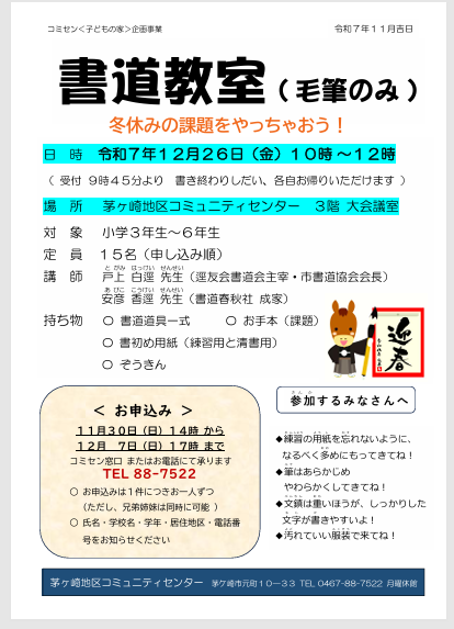 書道教室を開催します。冬休みの課題をやっちゃおう!