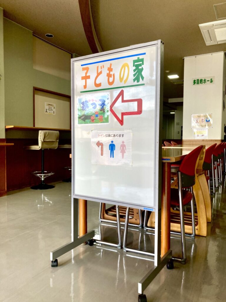 2階の多目的ホール入口に「かやっこ」の案内板があります。
