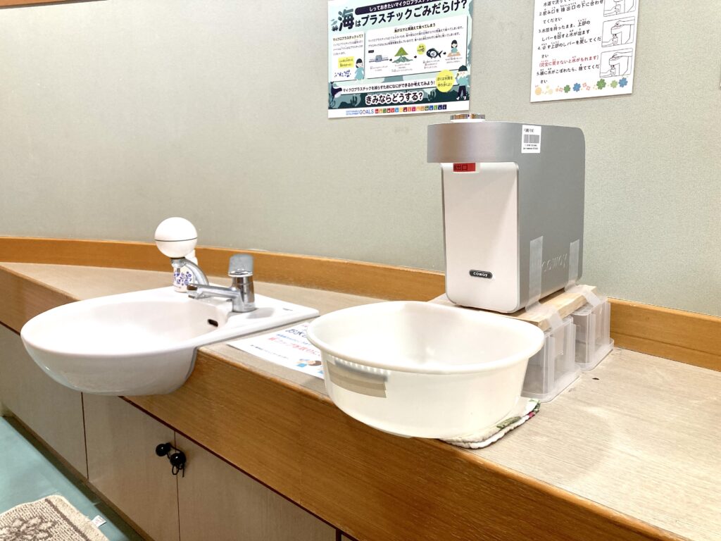浄水器もご用意しています。紙コップは受付の職員にお申し付けください。
