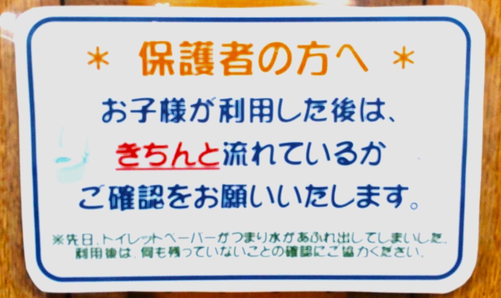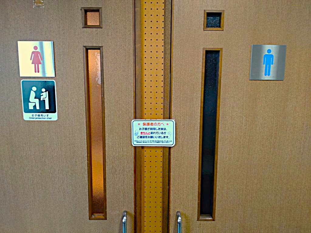 「かやっこ」の中にもトイレがあります。オムツ替えは2階多目的トイレか女子トイレのベッドをご利用ください。