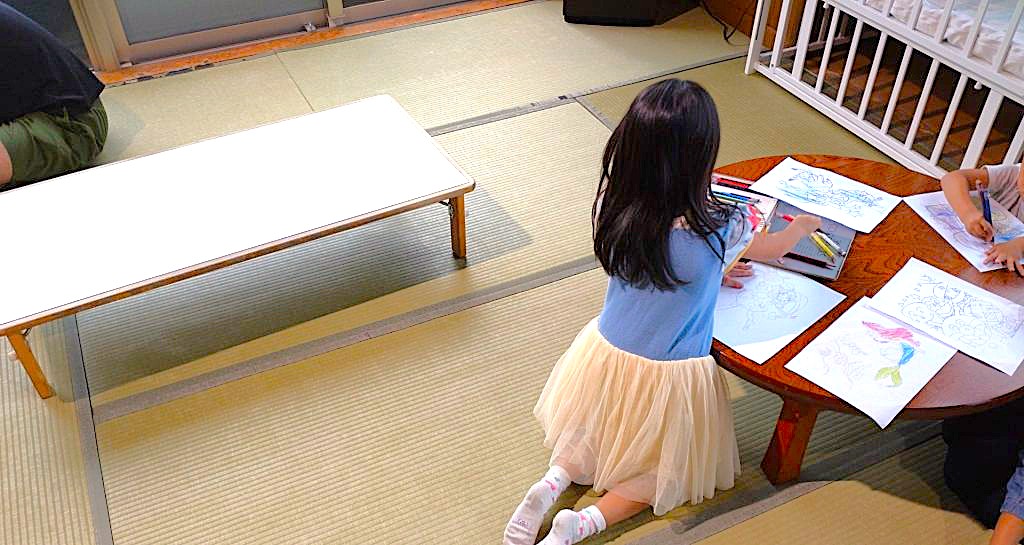 《畳コーナー》本を読んだり、ぬり絵ができます。