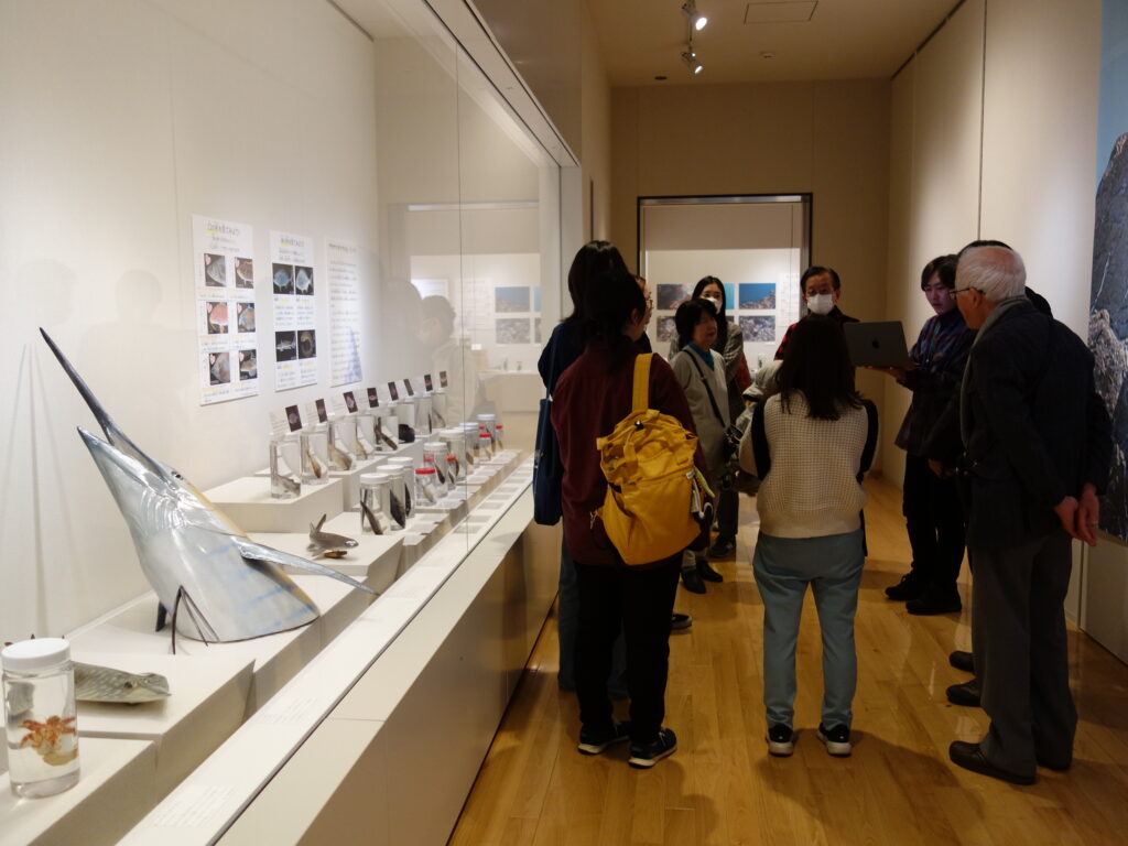 茅ヶ崎市博物館では、現在開催中の企画展「えぼし岩調査隊!」を中心に見学しました。見学に際しては、学芸員のながおさんからえぼし岩周辺で見られる魚やその魚を食べにくる鳥について説明をいただきました。もっとも印象に残ったのは、魚の”ほうぼう”の説明で、ほうぼうには足があり、海底の砂の上を歩くことができ、歩きながら砂の中にいる餌を見つけ食べるということで、その足に嗅覚があるということでした。企画展は観覧無料で6月28日(日)まで開催とのことです。一度、見学に行かれてみてはいかがでしょうか。