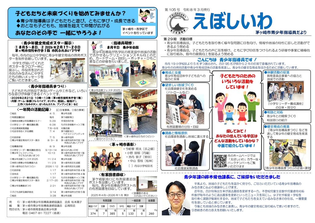 青少年指導員だより 第105号『えぼしいわ』を掲載しました。