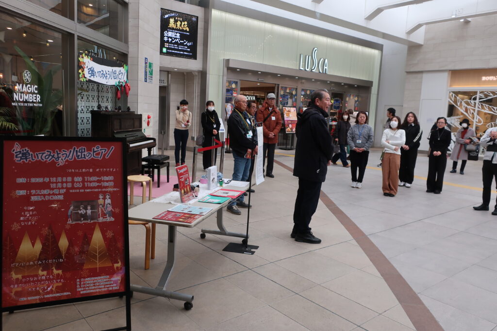 4回目となる「駅ピアノ」がラスカ茅ヶ崎3階正面入り口付近で開催されました。2日間という短い期間でしたが、延べで約200人の方々が演奏してくださいました。初めての12月の開催でしたが、みなさん一生懸命に演奏してくださって聴いている私たちも幸せな気持ちに包まれました。関係の皆さま、ご協力を本当にありがとうございました。