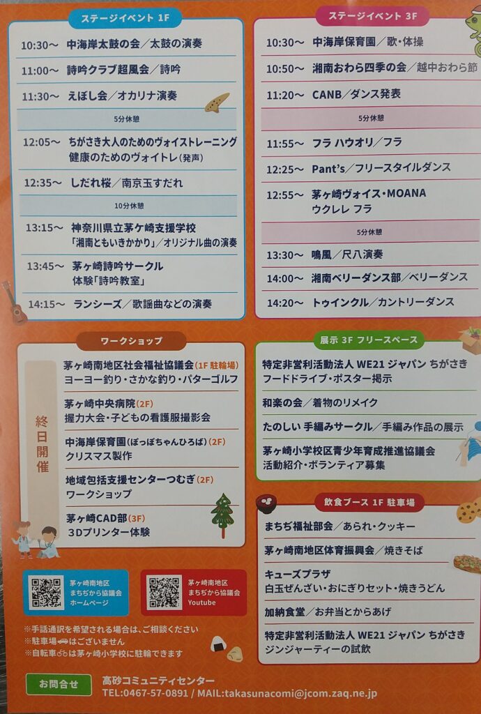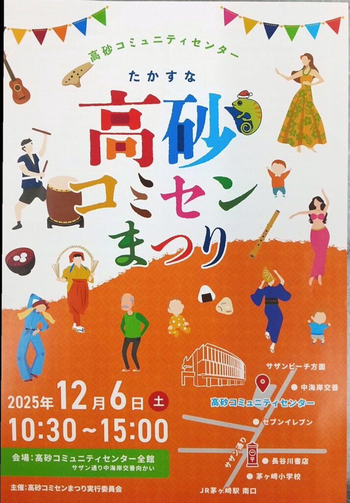 2025年11月30日 / 最終更新日時 : 2025年11月30日 UNNO お知らせ 12/6日(土)10:30~15:00 高砂コミセン祭り開催のお知らせ 今年も高砂コミセン祭りを開催します ■日時:2025年12月6日(土) 10:30~15:00 ■会場:茅ヶ崎 高砂コミセン祭り ■入場無料 DSC_1734 DSC_1735